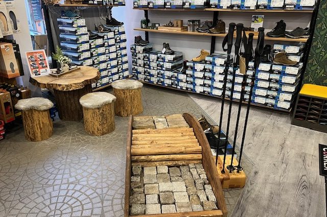 Den richtigen Sitz eurer zukünftigen Wanderschuhe könnt ihr gern auf unserer Testbrücke ausprobieren. Besonders das Verhalten im Abstieg ist immens wichtig für eine gelungene Wanderung und auch verschiedene Untergründe können hier gut getestet werden.