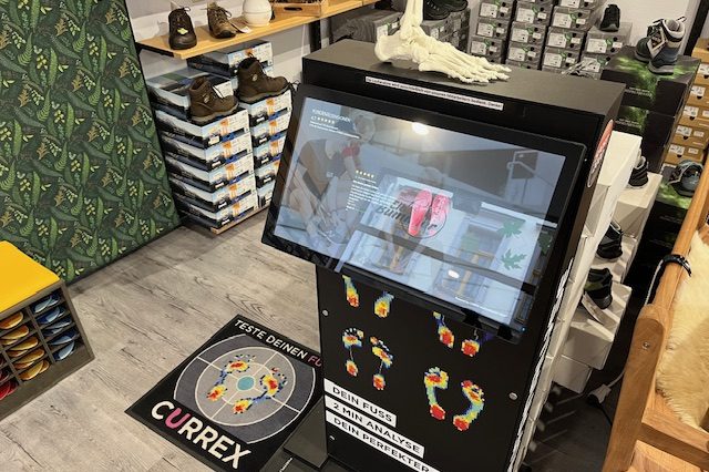 Bei der dynamischen Fußdruckmessung unserer CURREX -Analyse messen 4000 Sensoren 100 x pro Sekunde das Abrollen des Fußes. Das Ergebnis? Die Empfehlung für den optimalen Schuh und deine individuelle Einlegesohle.